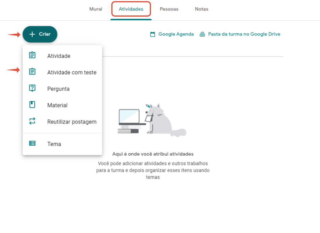 Para postar uma atividade no Google Classroom com um arquivo existente no Google Drive, siga os seguintes passos: