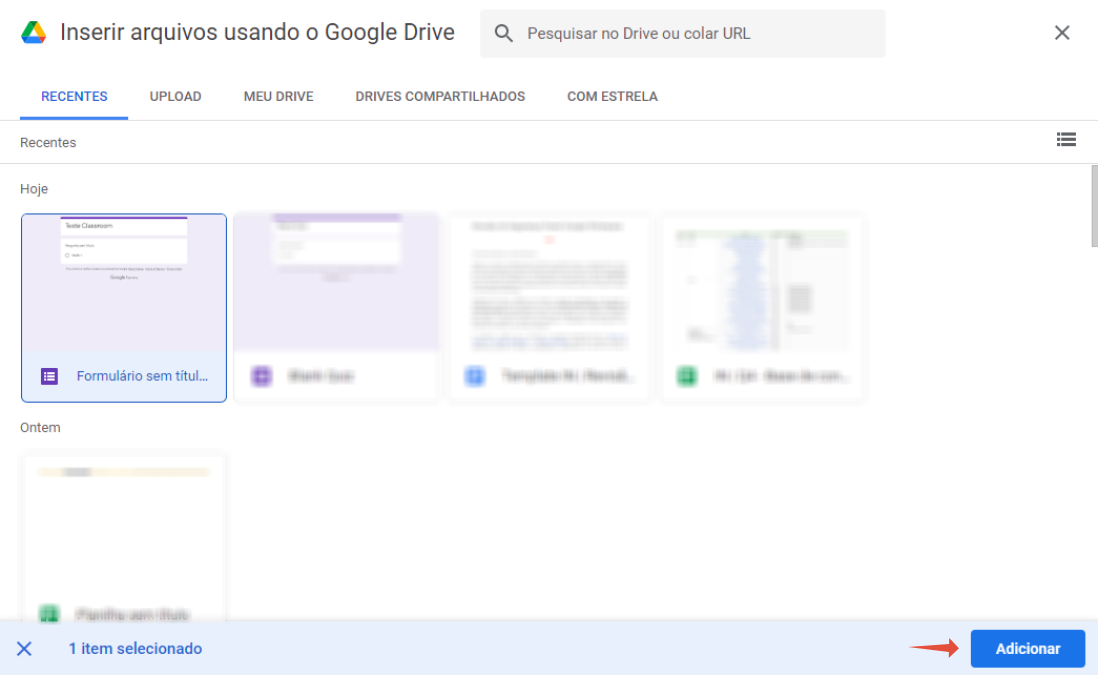 5. Selecione o arquivo desejado e clique em Adicionar.