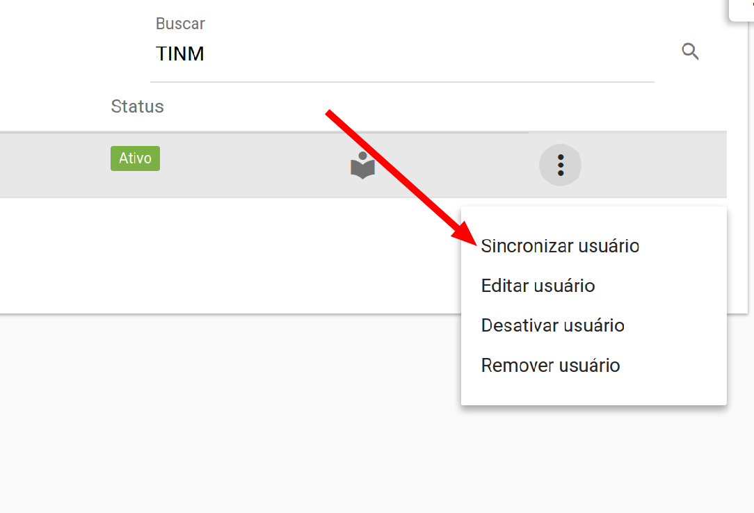 3. Localize o usuário que deseja sincronizar, e clique em Ver mais (três pontinhos localizado a direita na linha do usuário)