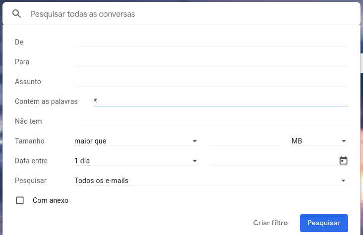 1.  Na caixa de pesquisa na parte superior do Gmail, clique na seta para baixo.