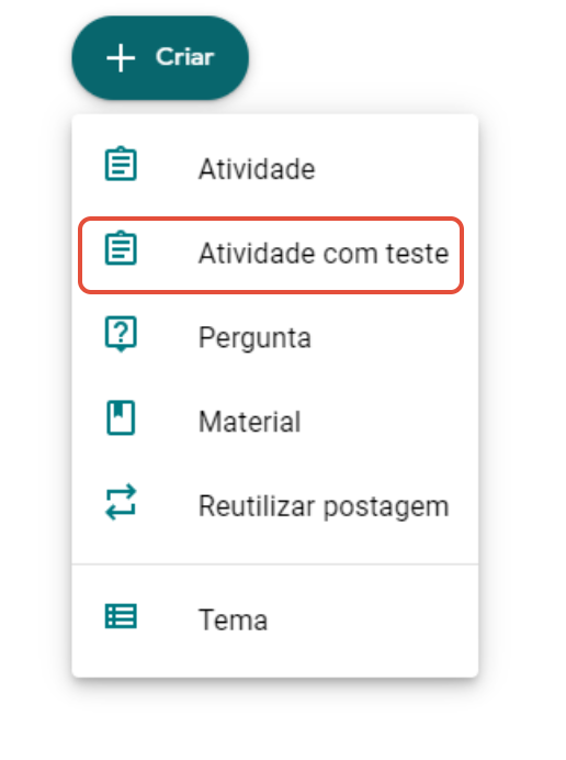 Atualmente, é possível criar uma atividade com teste no Google Sala de Aula para os alunos responderem e enviarem como teste do Formulários Google. É possível atribuir a atividade com teste a uma ou mais turmas ou a alunos específicos, programar para postar depois, adicionar data e hora de entrega e incluir anexos.