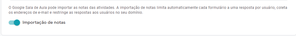 Dica: se você anexar um formulário como um link no Google Sala de Aula, não poderá importar as notas dos alunos.